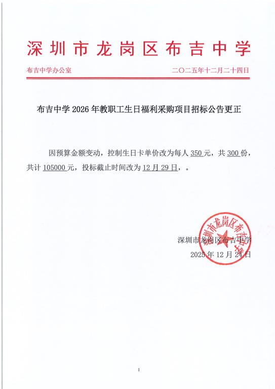 布吉中学2026年教职工生日福利采购项目招标公告更正
