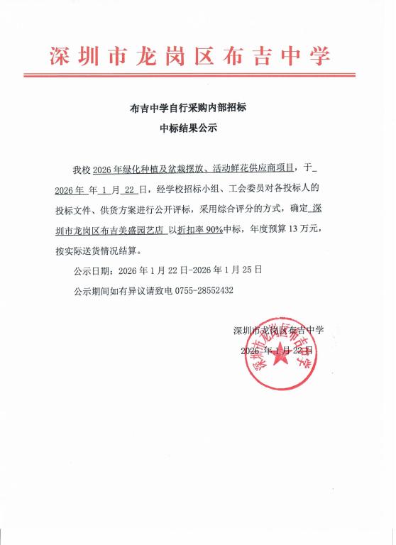 布吉中学围墙校园文化设计及安装布置项目招标公告